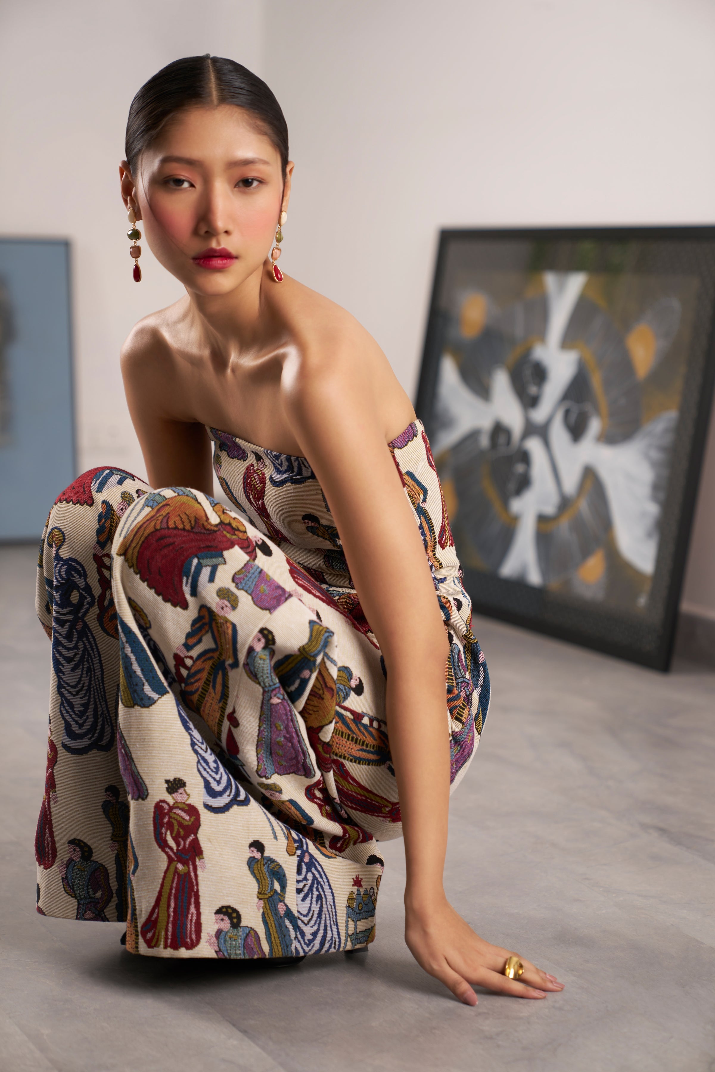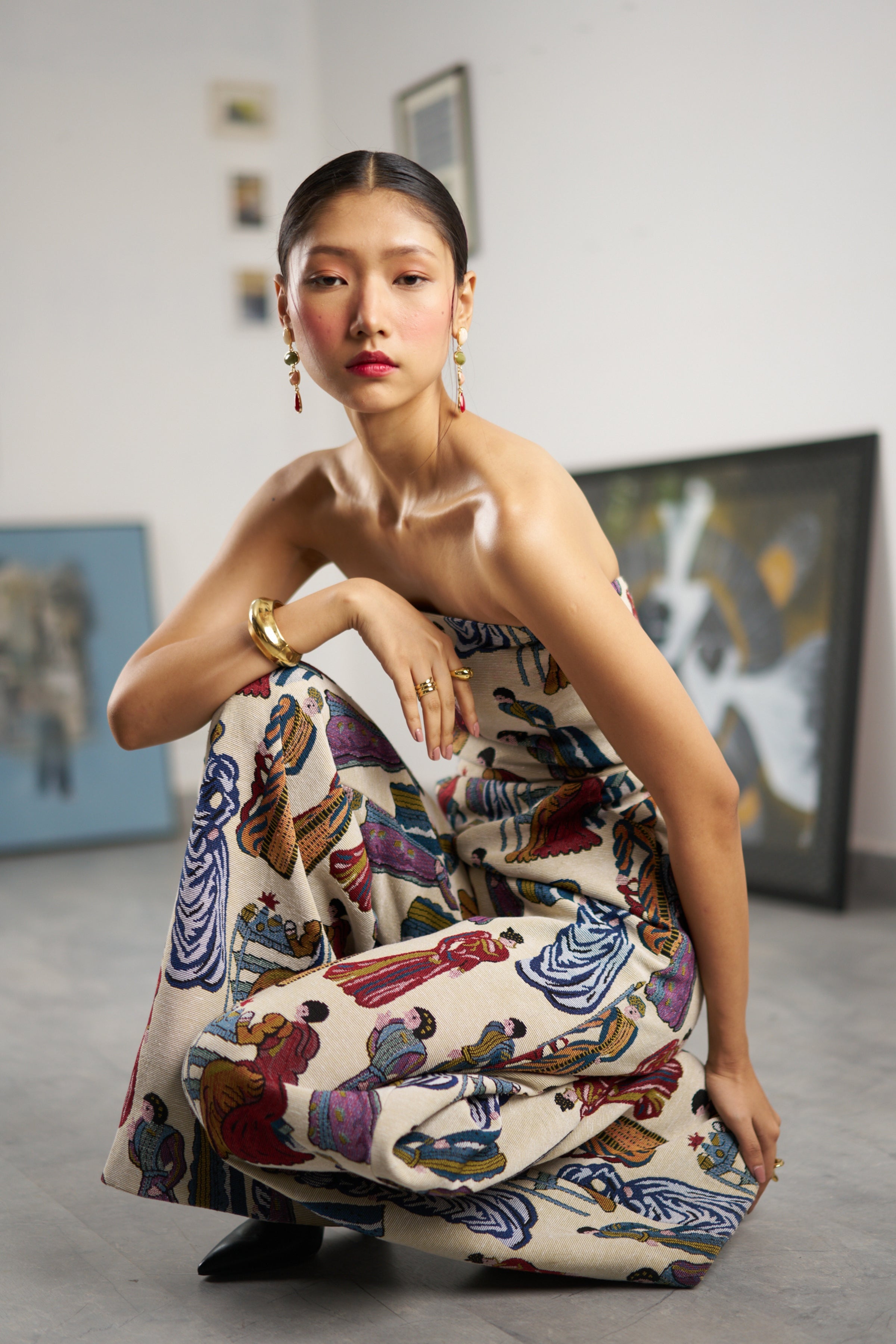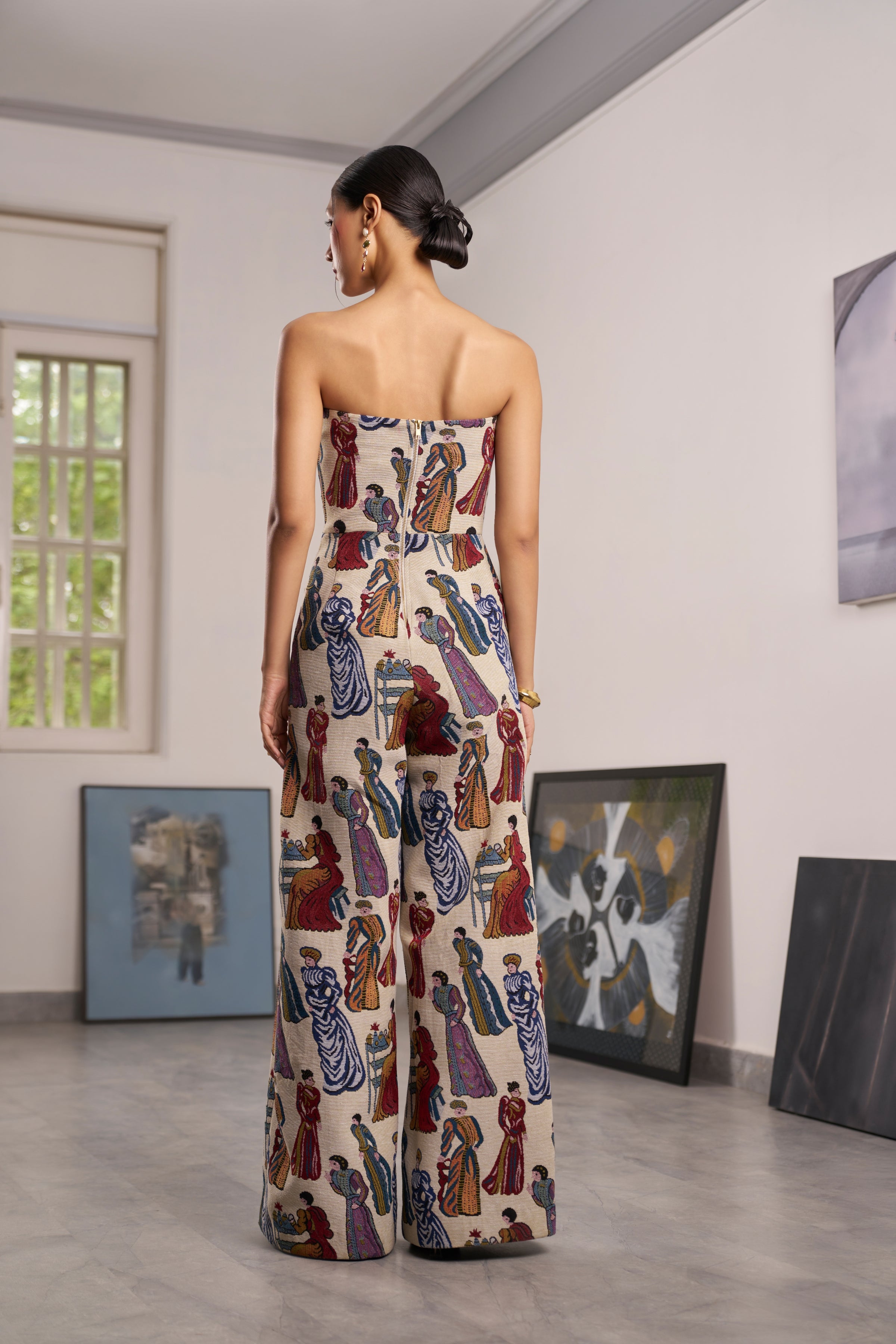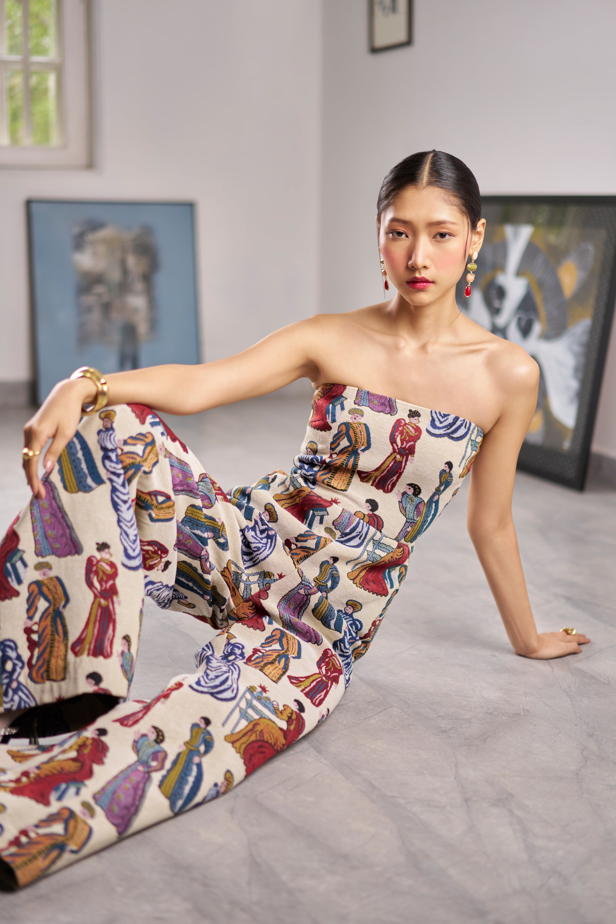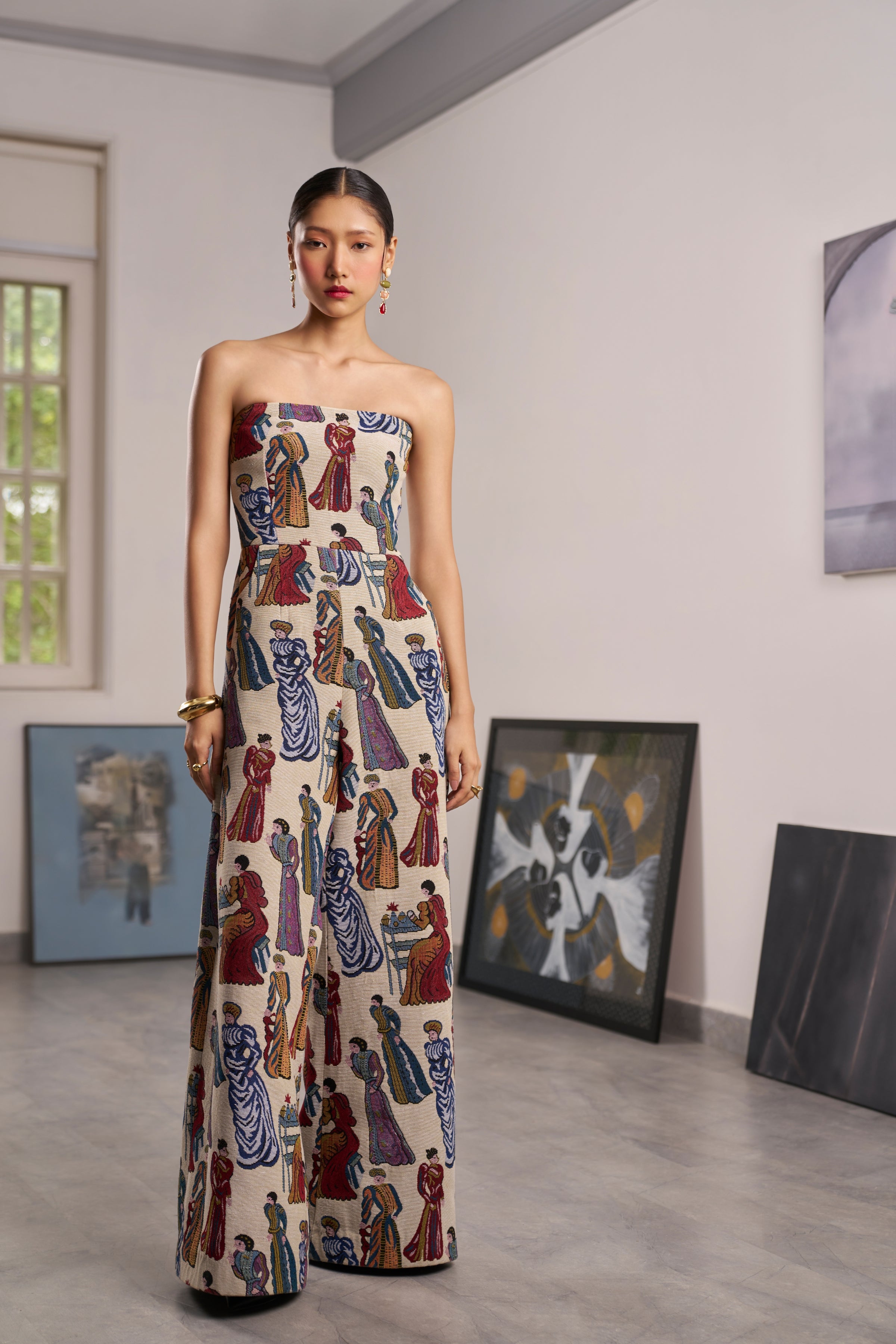 This strapless jumpsuit, in a playful all-over print on crisp white, is your go-to for fun day occasions. Easy, breezy, and full of personality — it’s made to move with you and stand out effortlessly.