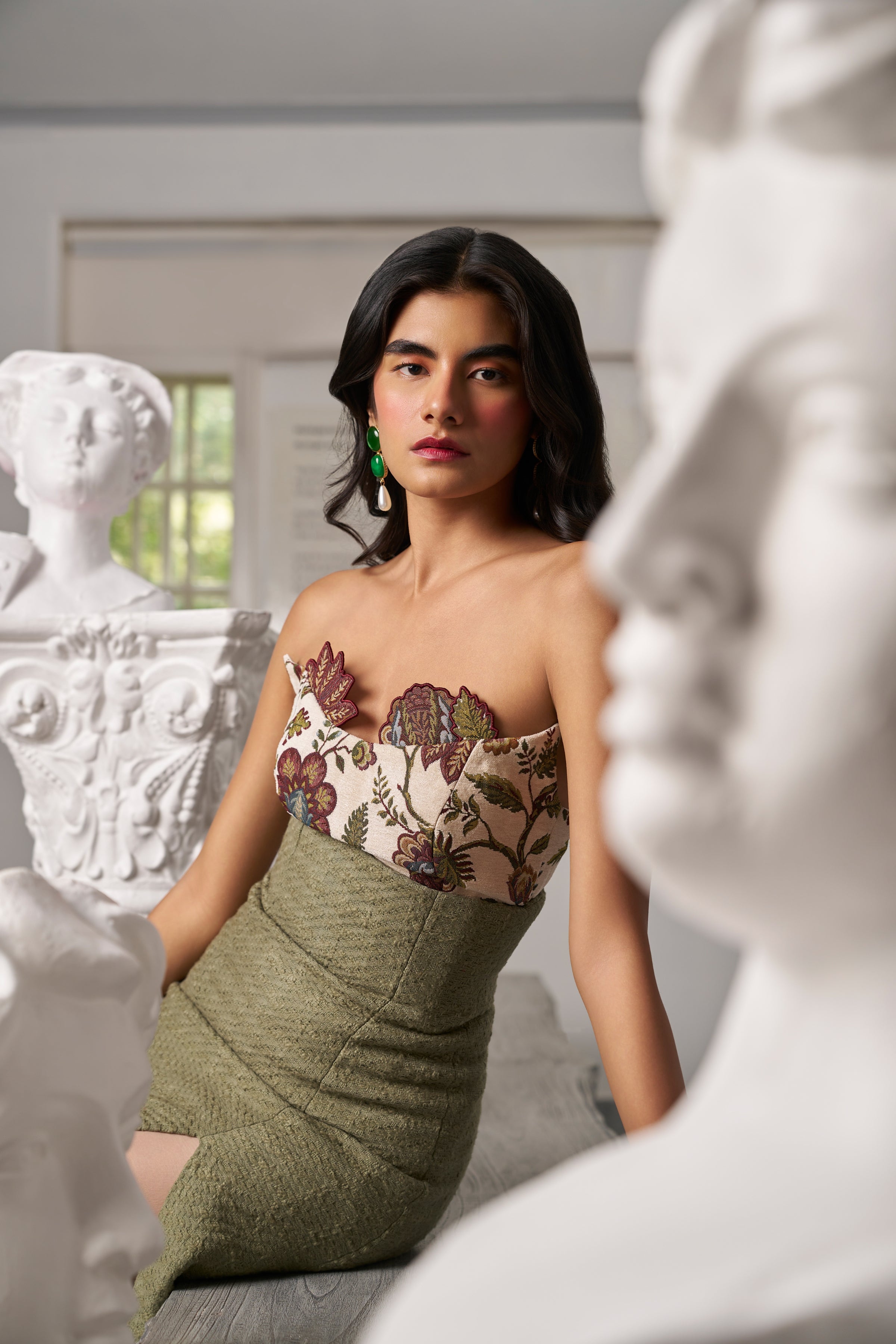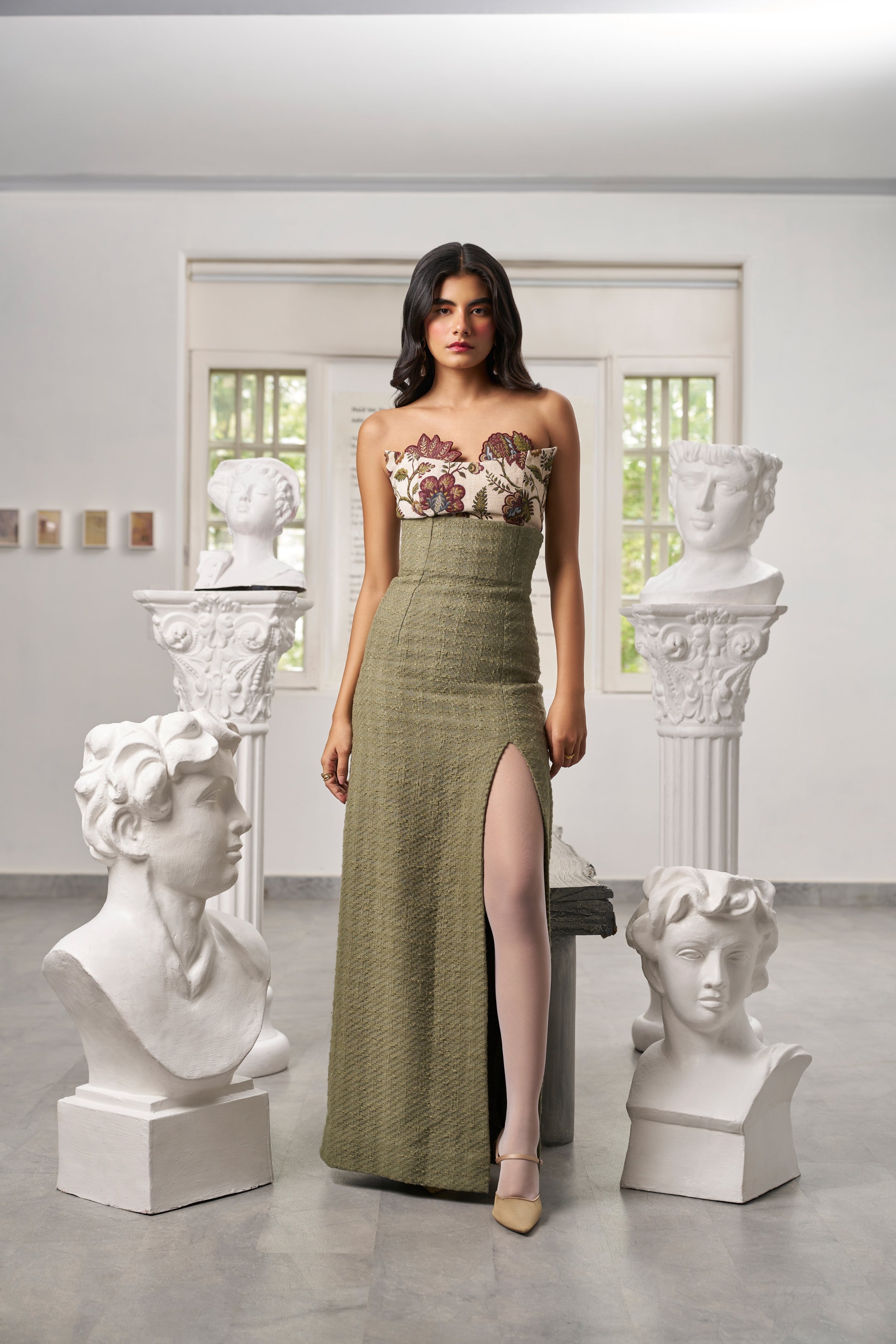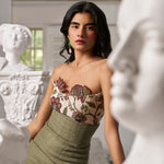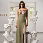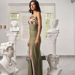 Step into summer with this elegant floral print skirt set featuring a strapless bandeau top and a super high-waisted skirt. The skirt’s side slit adds a subtle touch of allure, making the whole look classy and effortlessly chic. Perfectly balanced for warm days and stylish evenings, this set is both fresh and sophisticated.