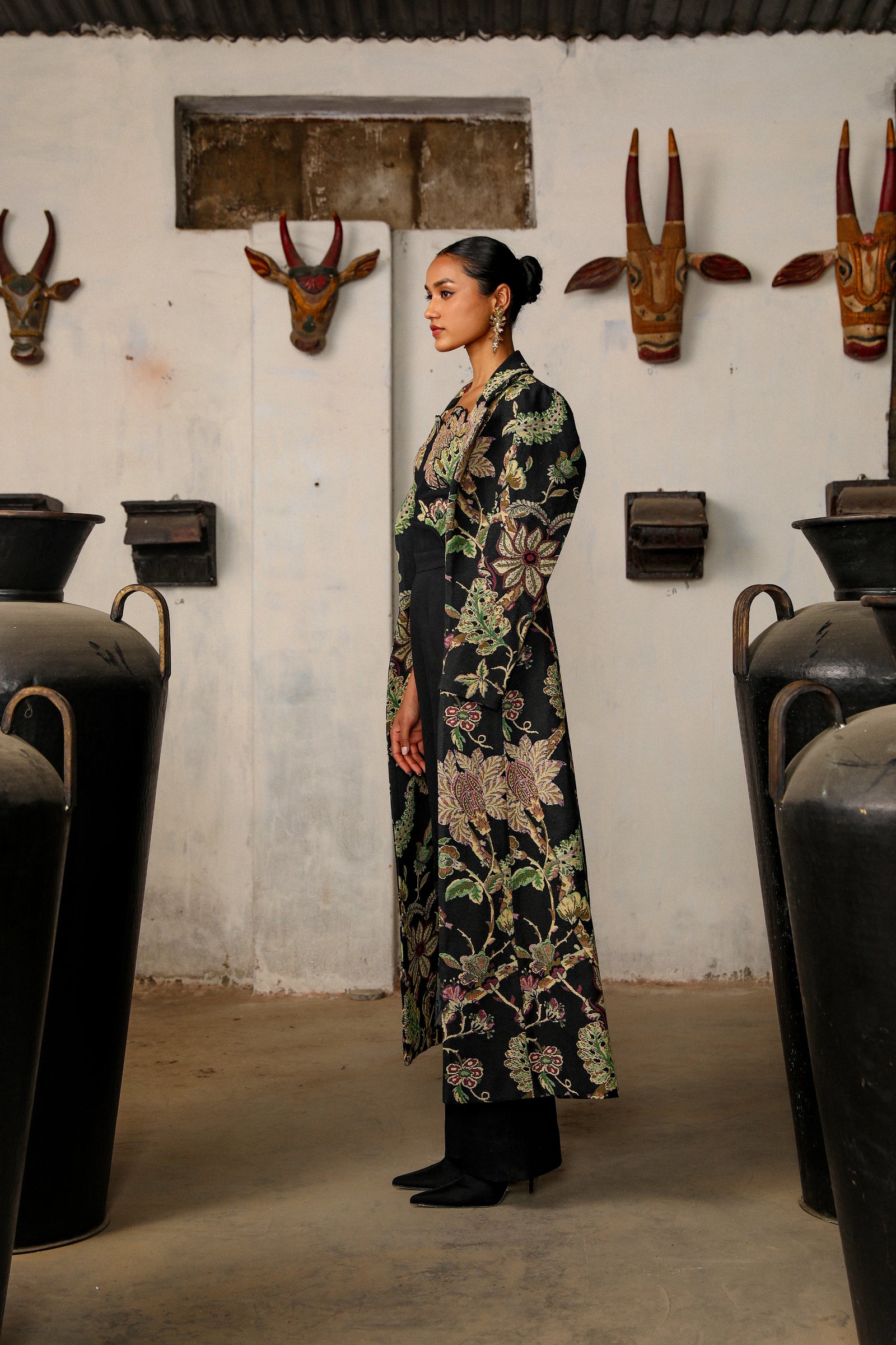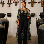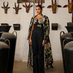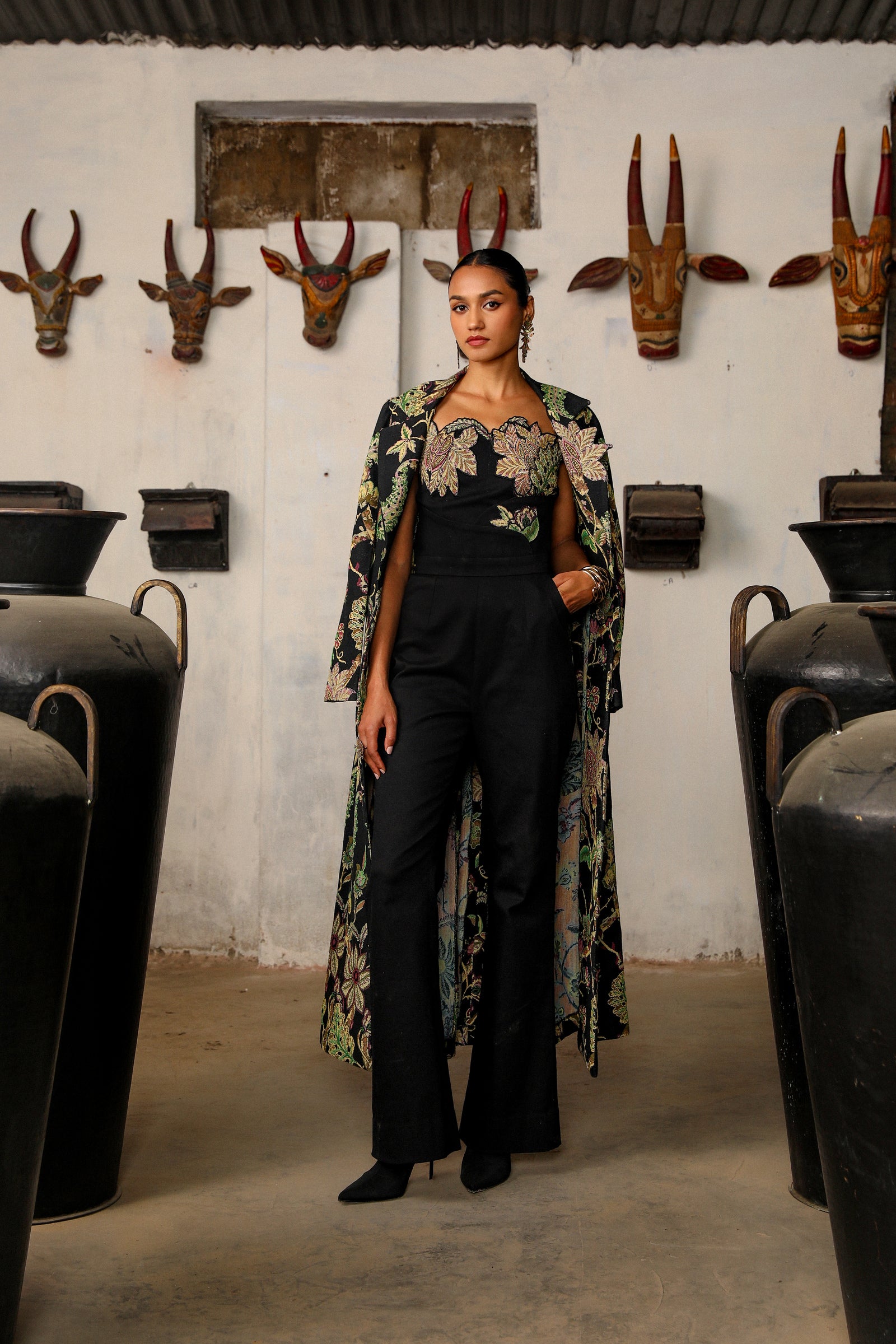 Dive into the realm of unbridled sophistication with our black Jude coord set. The shoulderless floral top detailing exudes intrigue, while the long pants amplify your aura with an edgy touch.